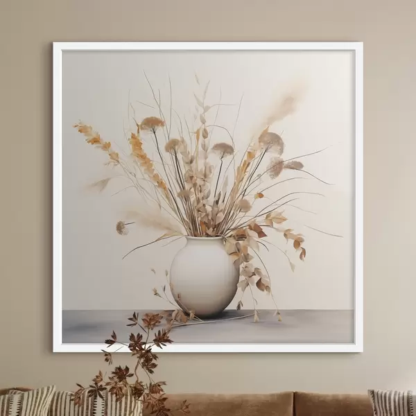 Poster Arreglo de hierbas y flores secas en un jarrón blanco f44348