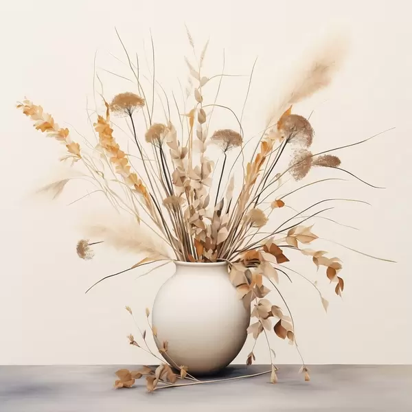 Poster Arreglo de hierbas y flores secas en un jarrón blanco Nr f44348