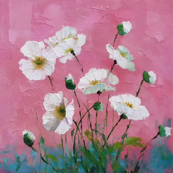 Poster Flores blancas sobre fondo rosa Nr f44360
