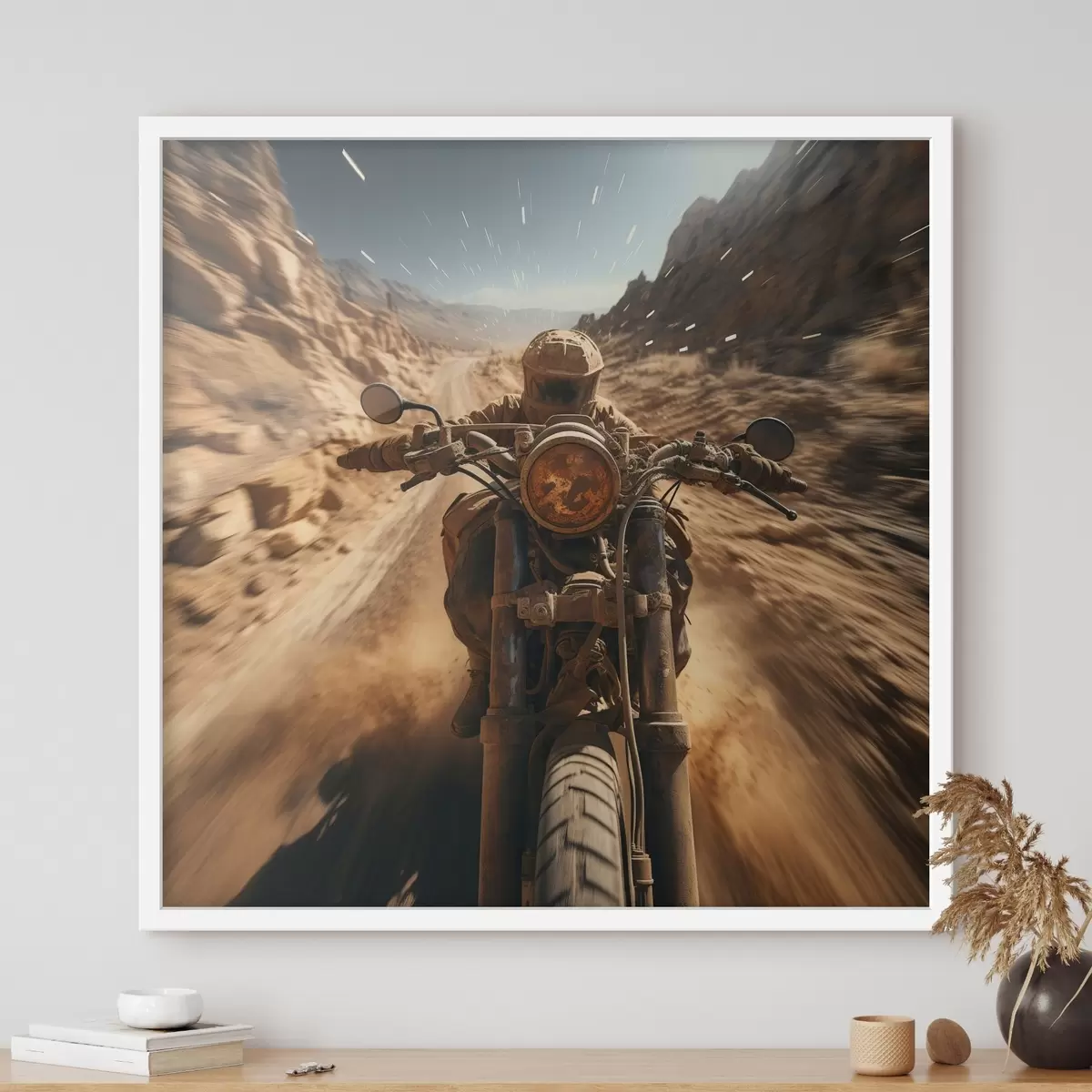 Poster Motociclista circulando a toda velocidad por una carretera desierta Nr f44361