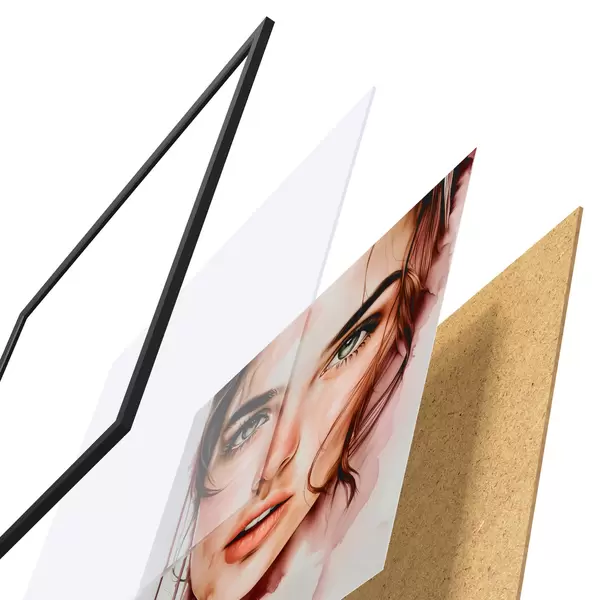 El póster consta de marco, plexiglás, imagen impresa y soporte de aglomerado. El póster puede colgarse inmediatamente en la pared gracias a los soportes de la parte posterior.