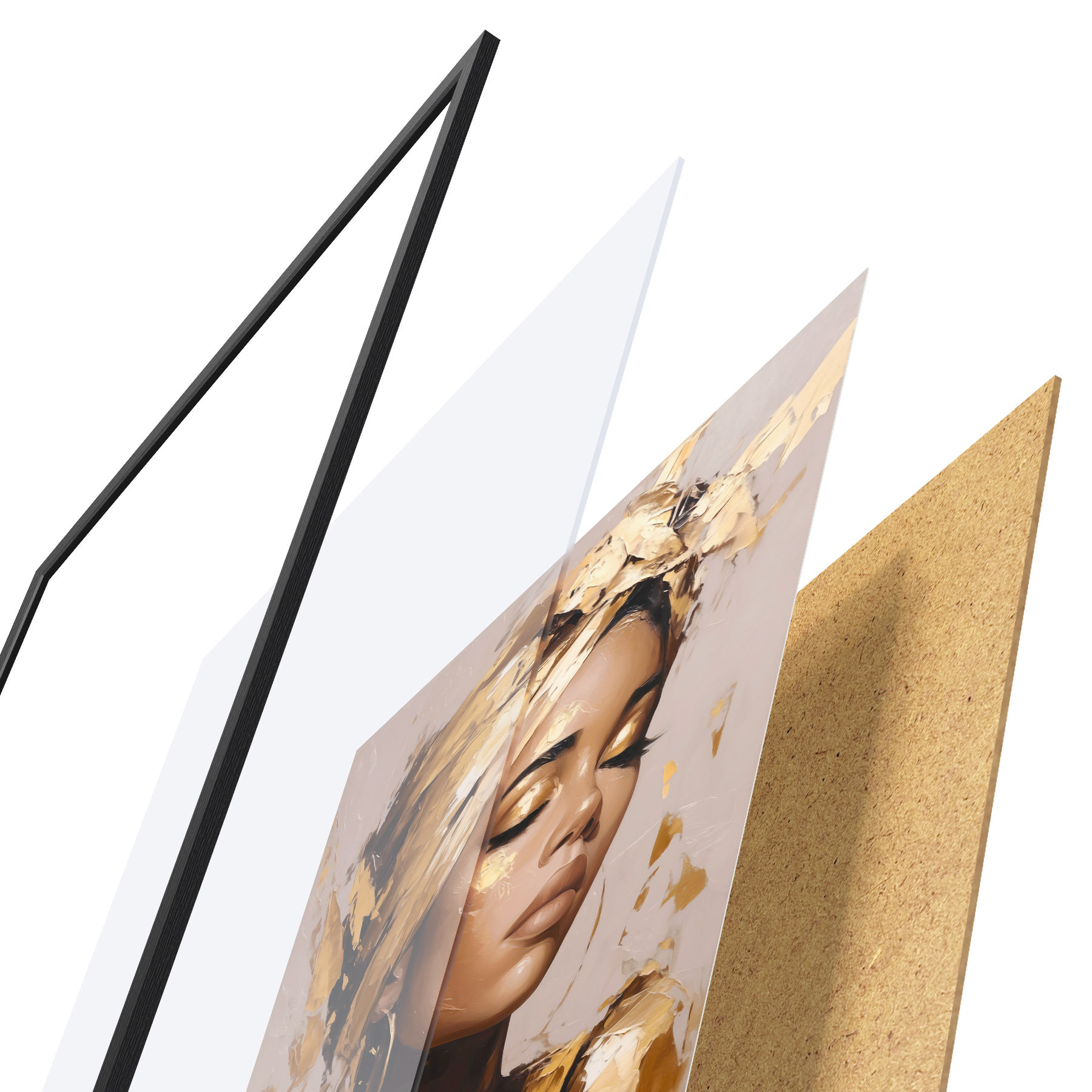 El póster consta de marco, plexiglás, imagen impresa y soporte de aglomerado. El póster puede colgarse inmediatamente en la pared gracias a los soportes de la parte posterior.