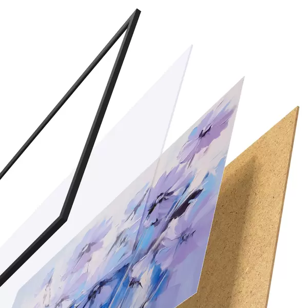 El póster consta de marco, plexiglás, imagen impresa y soporte de aglomerado. El póster puede colgarse inmediatamente en la pared gracias a los soportes de la parte posterior.