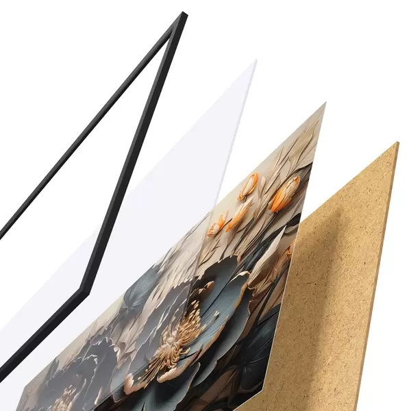 El póster consta de marco, plexiglás, imagen impresa y soporte de aglomerado. El póster puede colgarse inmediatamente en la pared gracias a los soportes de la parte posterior.