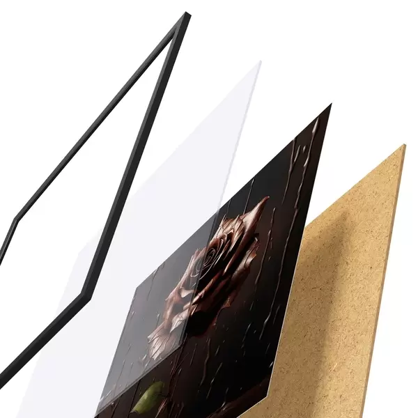 El póster consta de marco, plexiglás, imagen impresa y soporte de aglomerado. El póster puede colgarse inmediatamente en la pared gracias a los soportes de la parte posterior.