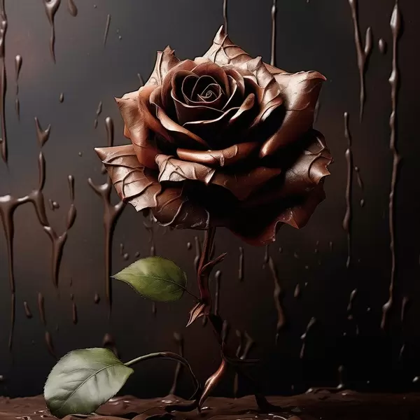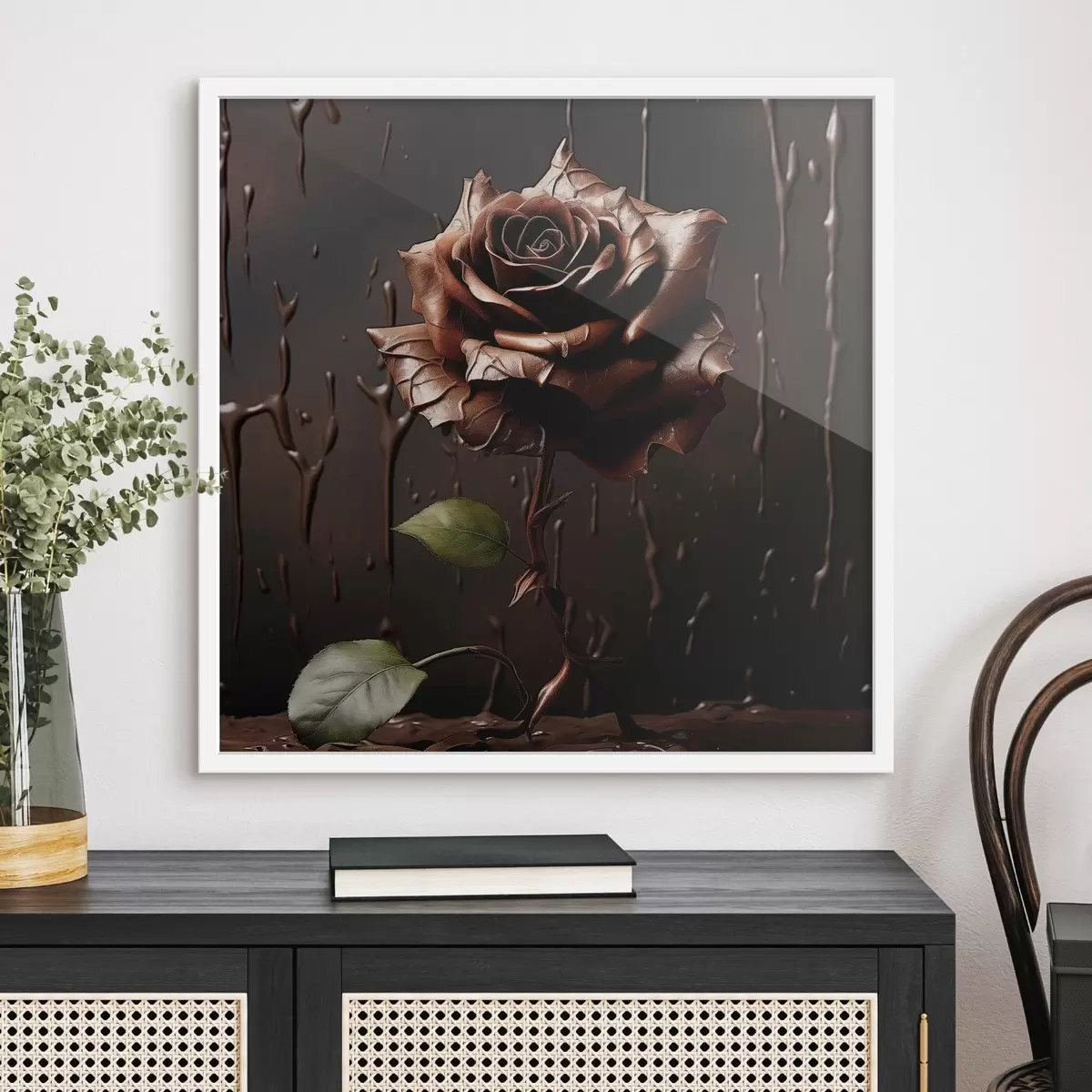 Poster Rosa marrón sobre fondo oscuro con salpicaduras de chocolate Nr f44381
