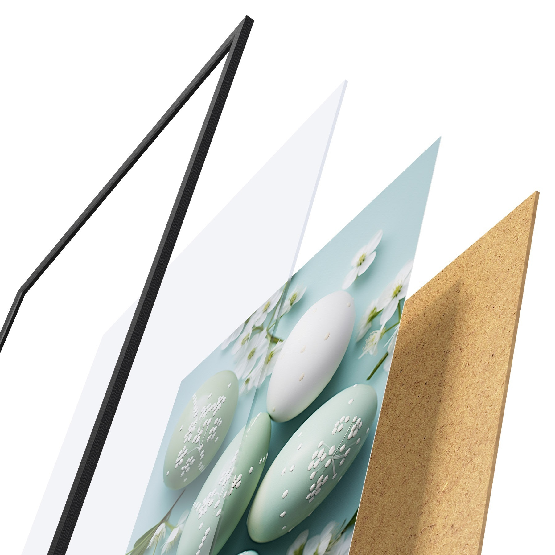 El póster consta de marco, plexiglás, imagen impresa y soporte de aglomerado. El póster puede colgarse inmediatamente en la pared gracias a los soportes de la parte posterior.
