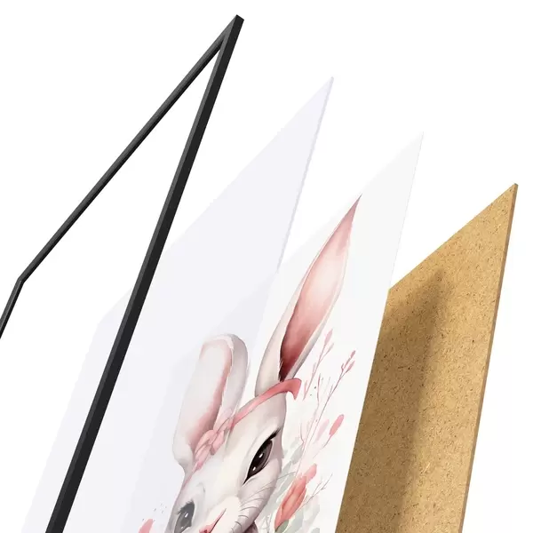 El póster consta de marco, plexiglás, imagen impresa y soporte de aglomerado. El póster puede colgarse inmediatamente en la pared gracias a los soportes de la parte posterior.