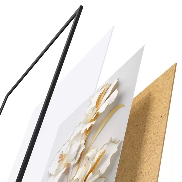 El póster consta de marco, plexiglás, imagen impresa y soporte de aglomerado. El póster puede colgarse inmediatamente en la pared gracias a los soportes de la parte posterior.