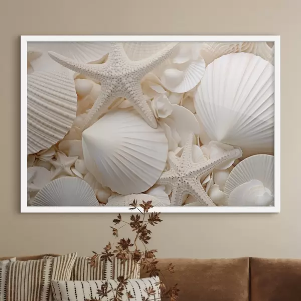 Poster Conchas y estrellas de mar blancas decorativas, que crean una composición monocromática con textura Nr f44392
