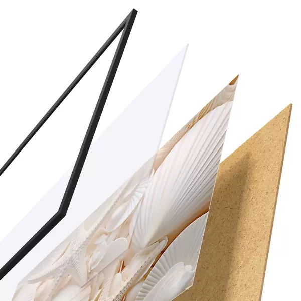 El póster consta de marco, plexiglás, imagen impresa y soporte de aglomerado. El póster puede colgarse inmediatamente en la pared gracias a los soportes de la parte posterior.