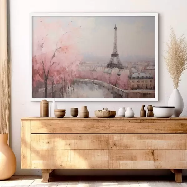 Poster Torre Eiffel en París con cerezos en flor en primavera, suaves colores pastel Nr f44398