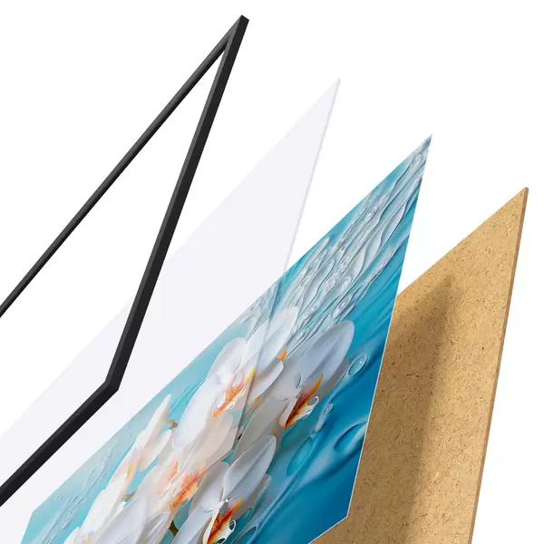 El póster consta de marco, plexiglás, imagen impresa y soporte de aglomerado. El póster puede colgarse inmediatamente en la pared gracias a los soportes de la parte posterior.
