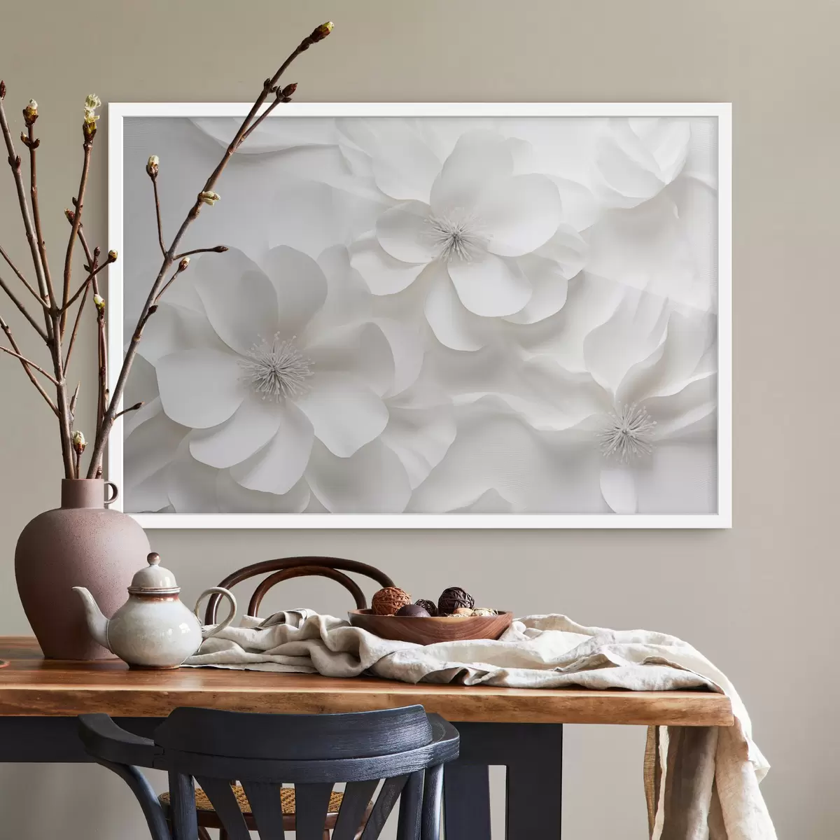 Poster Flores decorativas blancas con pétalos delicados y estambres intrincados f44406