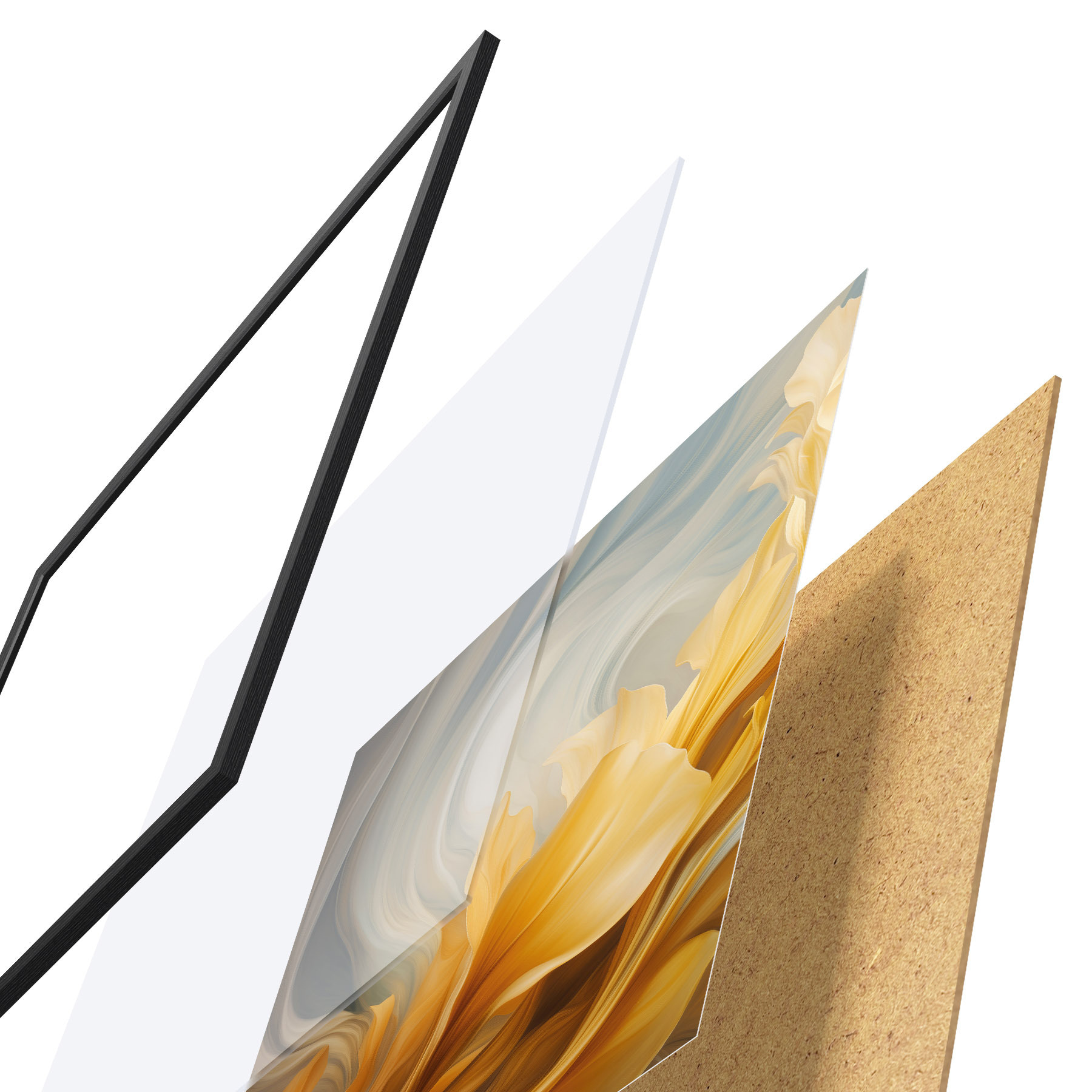 El póster consta de marco, plexiglás, imagen impresa y soporte de aglomerado. El póster puede colgarse inmediatamente en la pared gracias a los soportes de la parte posterior.