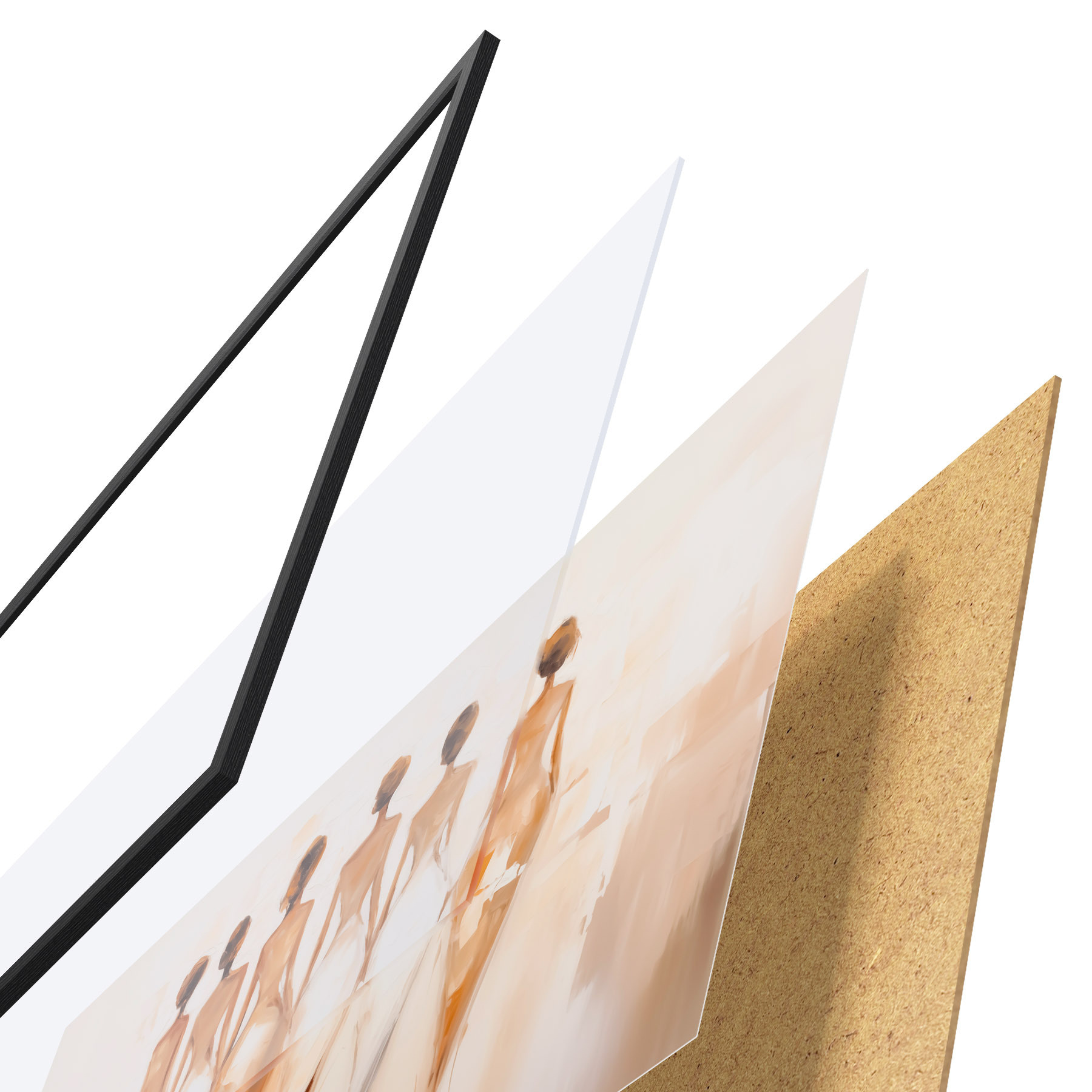 El póster consta de marco, plexiglás, imagen impresa y soporte de aglomerado. El póster puede colgarse inmediatamente en la pared gracias a los soportes de la parte posterior.