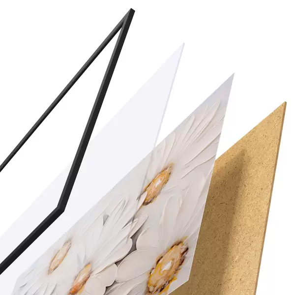 El póster consta de marco, plexiglás, imagen impresa y soporte de aglomerado. El póster puede colgarse inmediatamente en la pared gracias a los soportes de la parte posterior.