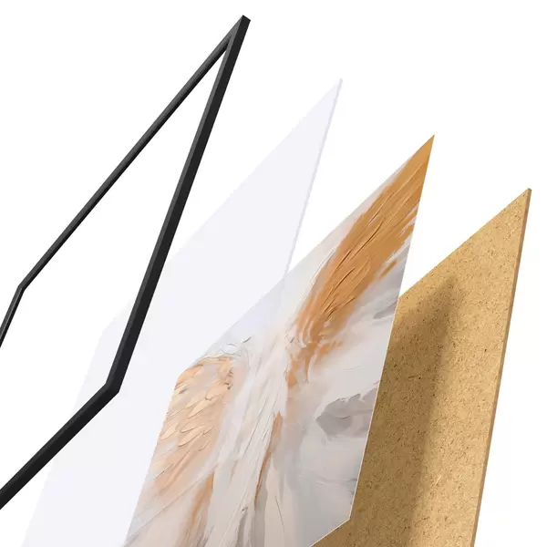 El póster consta de marco, plexiglás, imagen impresa y soporte de aglomerado. El póster puede colgarse inmediatamente en la pared gracias a los soportes de la parte posterior.