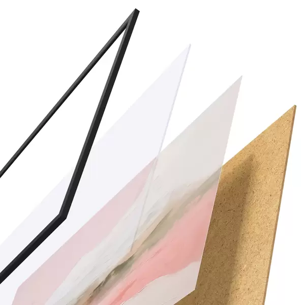 El póster consta de marco, plexiglás, imagen impresa y soporte de aglomerado. El póster puede colgarse inmediatamente en la pared gracias a los soportes de la parte posterior.