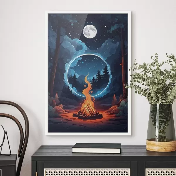 Poster Hoguera en bosque nocturno f44436