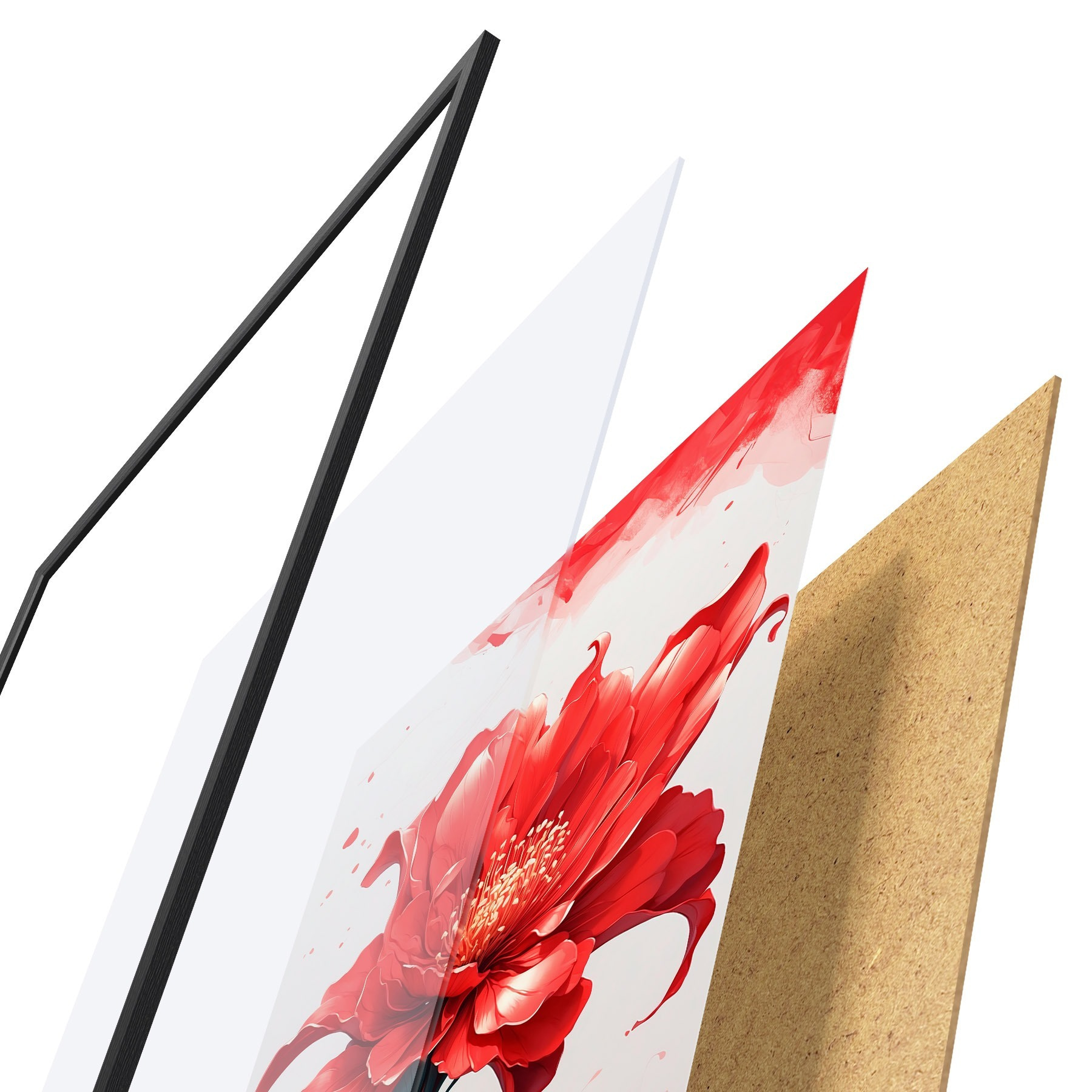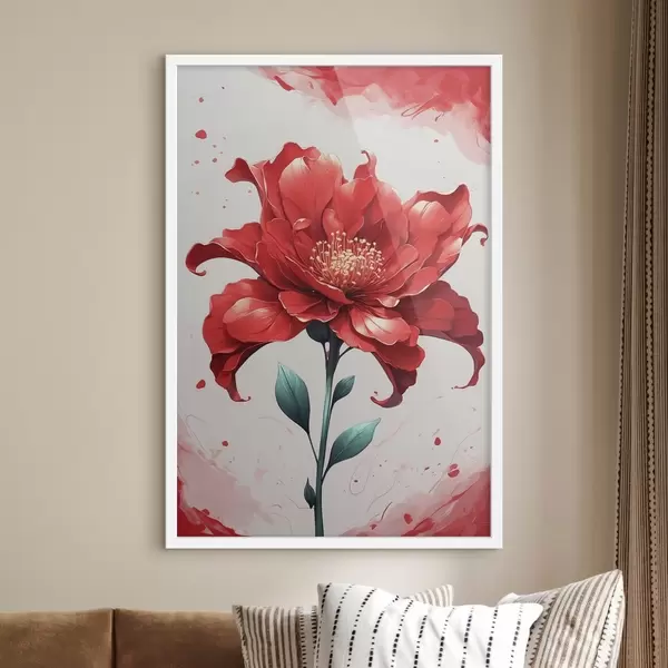 Poster Flor roja sobre fondo blanco-rojo f44442