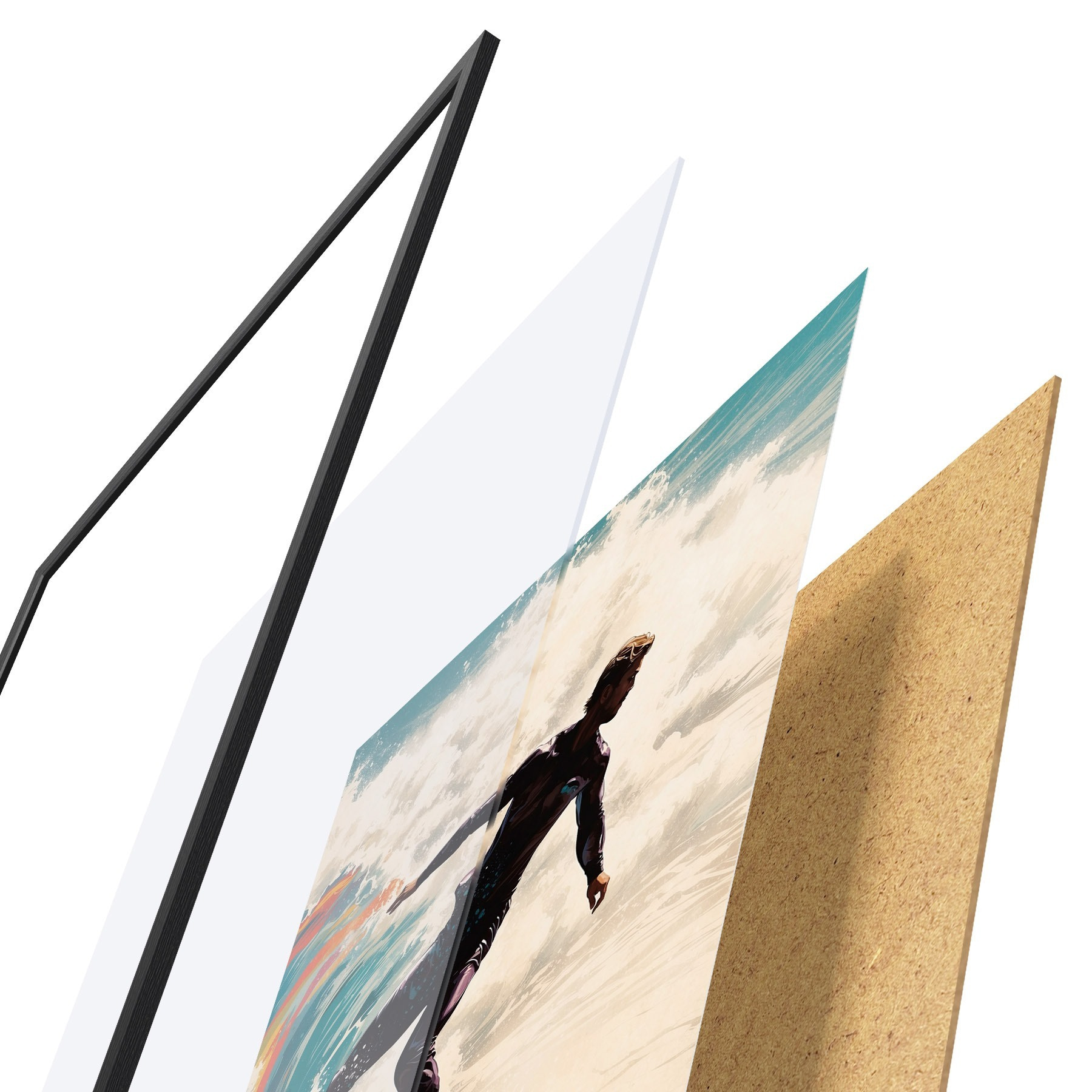El póster consta de marco, plexiglás, imagen impresa y soporte de aglomerado. El póster puede colgarse inmediatamente en la pared gracias a los soportes de la parte posterior.