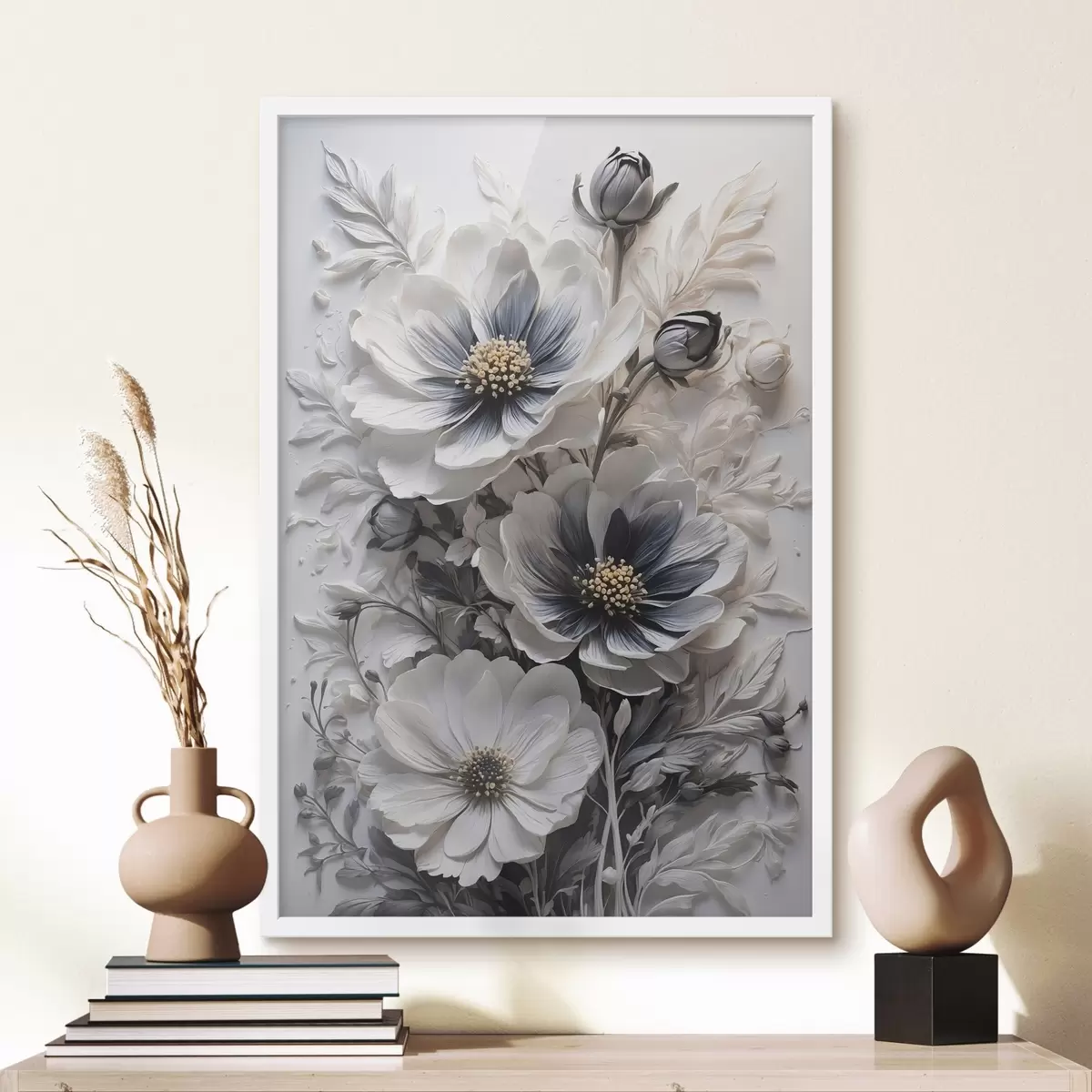 Poster Flores blancas y negras sobre fondo blanco f44446