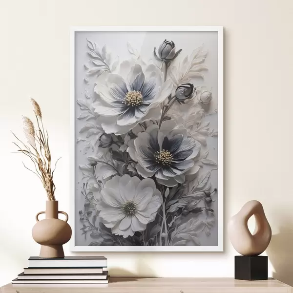 Poster Flores blancas y negras sobre fondo blanco Nr f44446