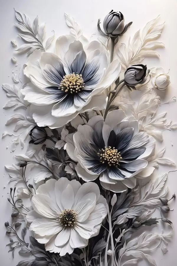 Poster Flores blancas y negras sobre fondo blanco Nr f44446
