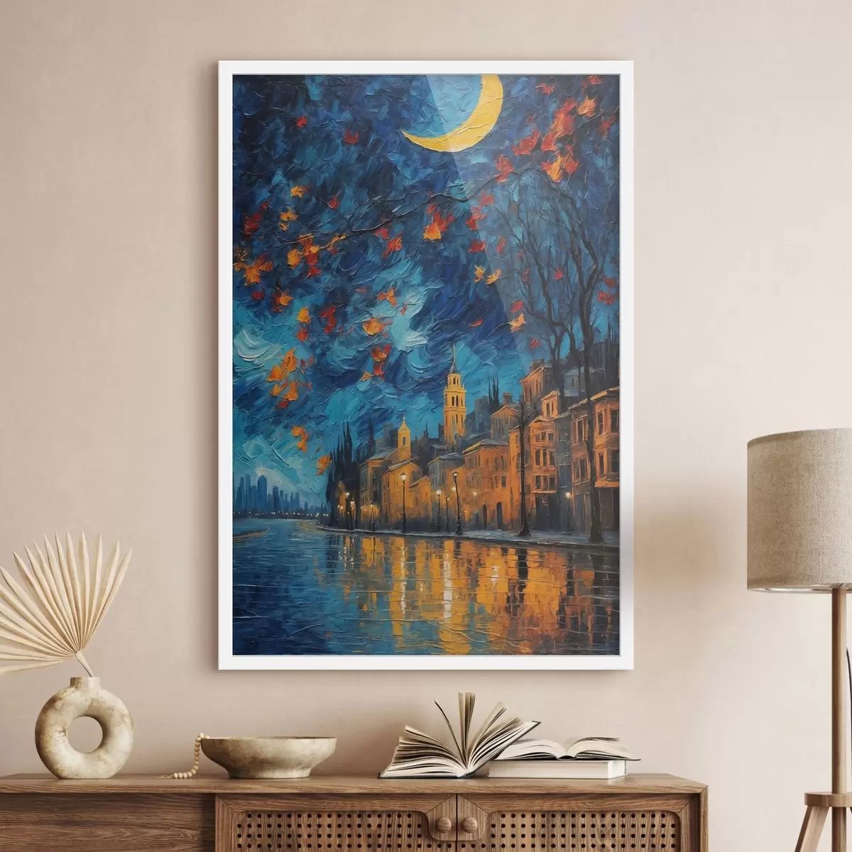 El barnizado crea una capa protectora adicional sobre el lienzo. El cuadro será más resistente a pequeños daños, y para refrescar el cuadro barnizado, puedes limpiarlo con un paño suave ligeramente humedecido.