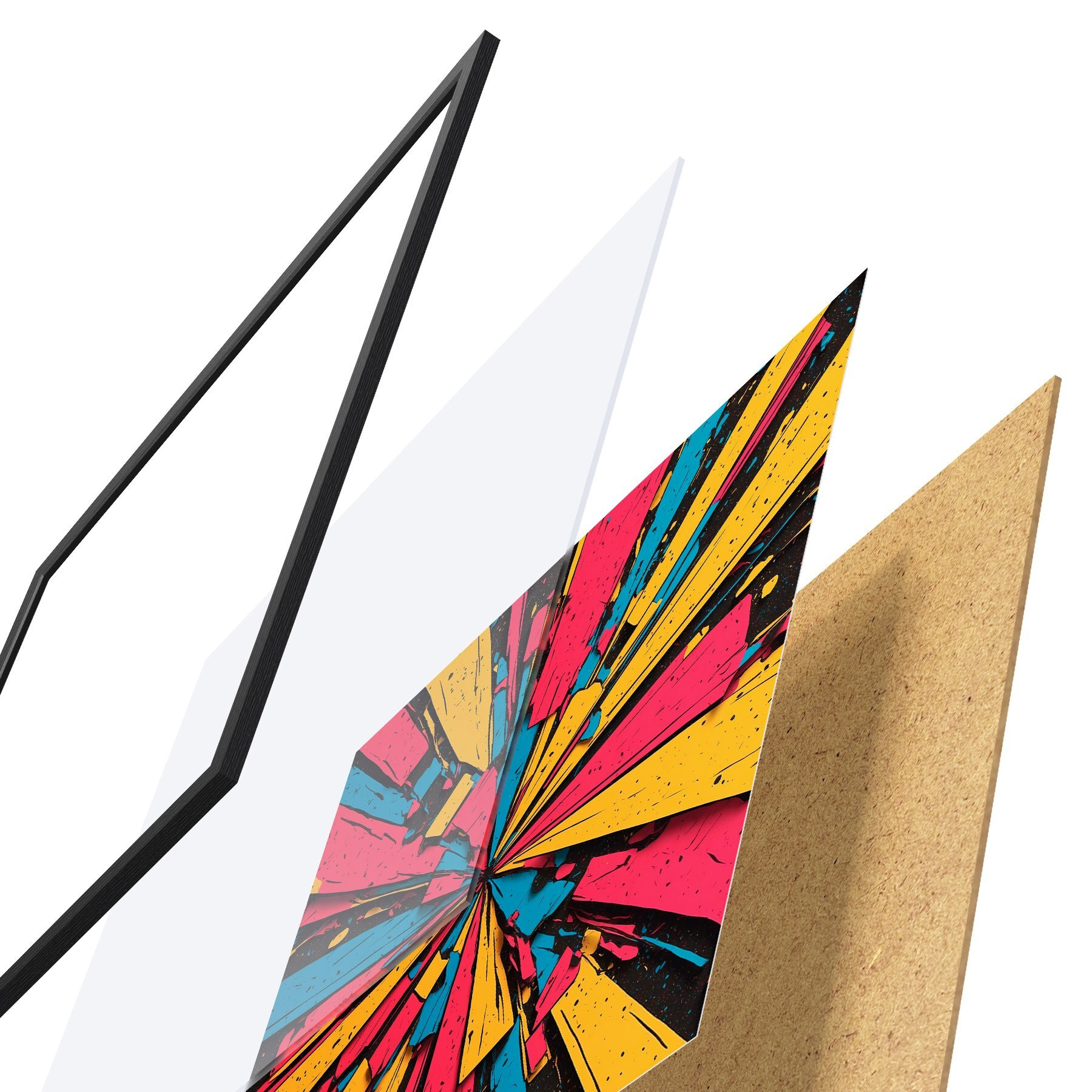 El póster consta de marco, plexiglás, imagen impresa y soporte de aglomerado. El póster puede colgarse inmediatamente en la pared gracias a los soportes de la parte posterior.