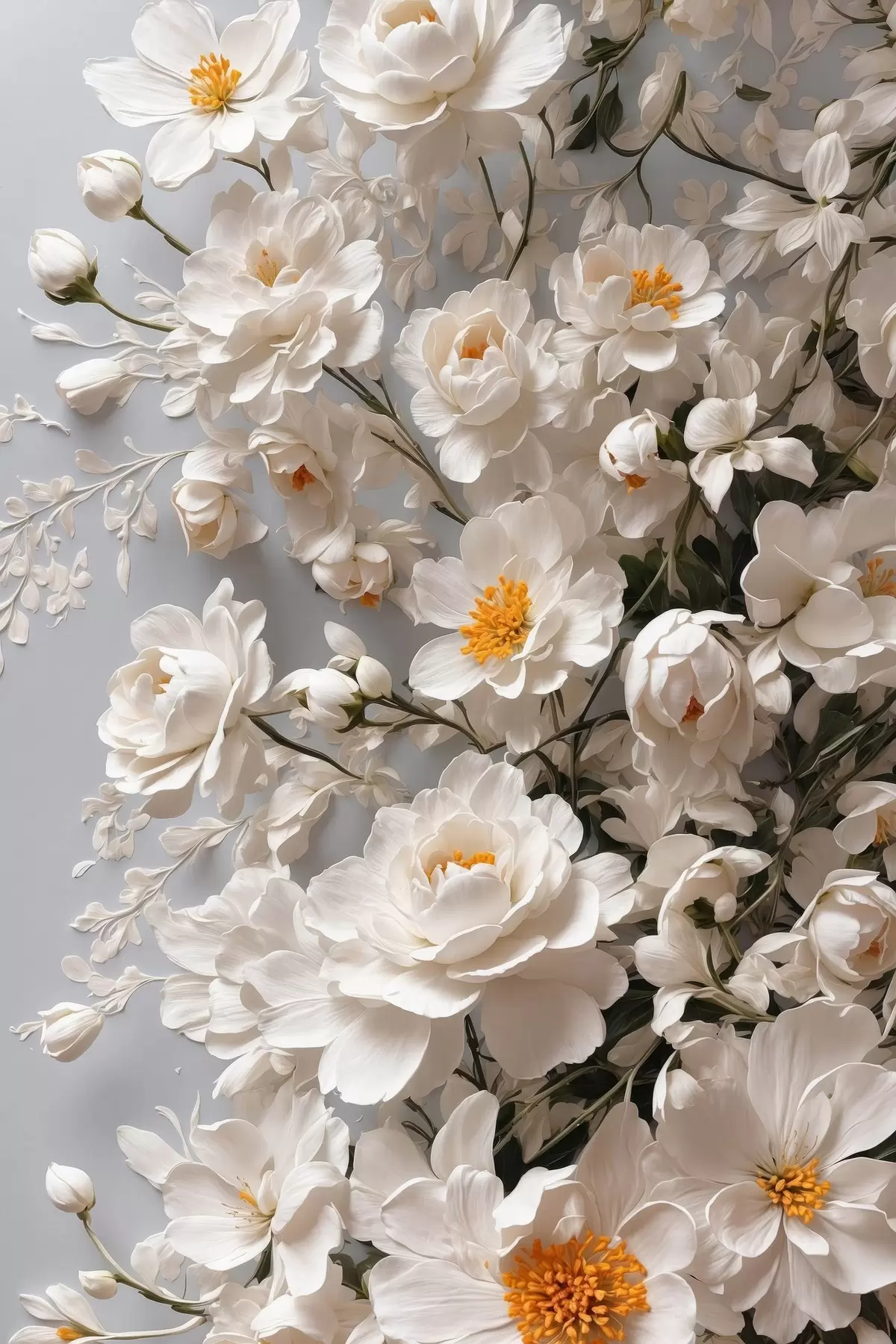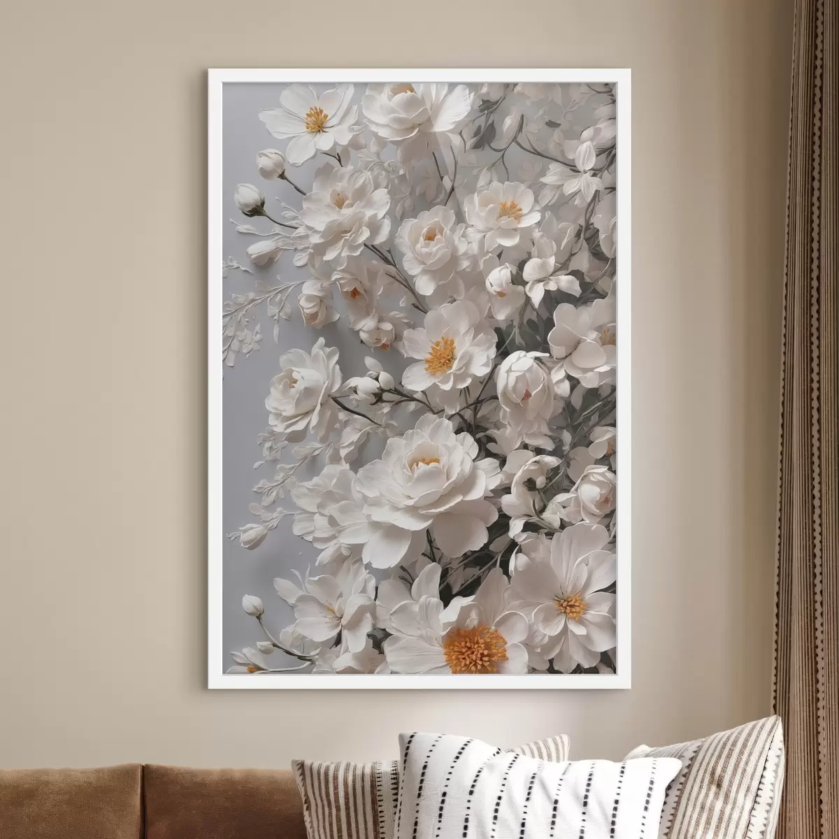 Poster Flores y hojas blancas sobre fondo blanco f44465