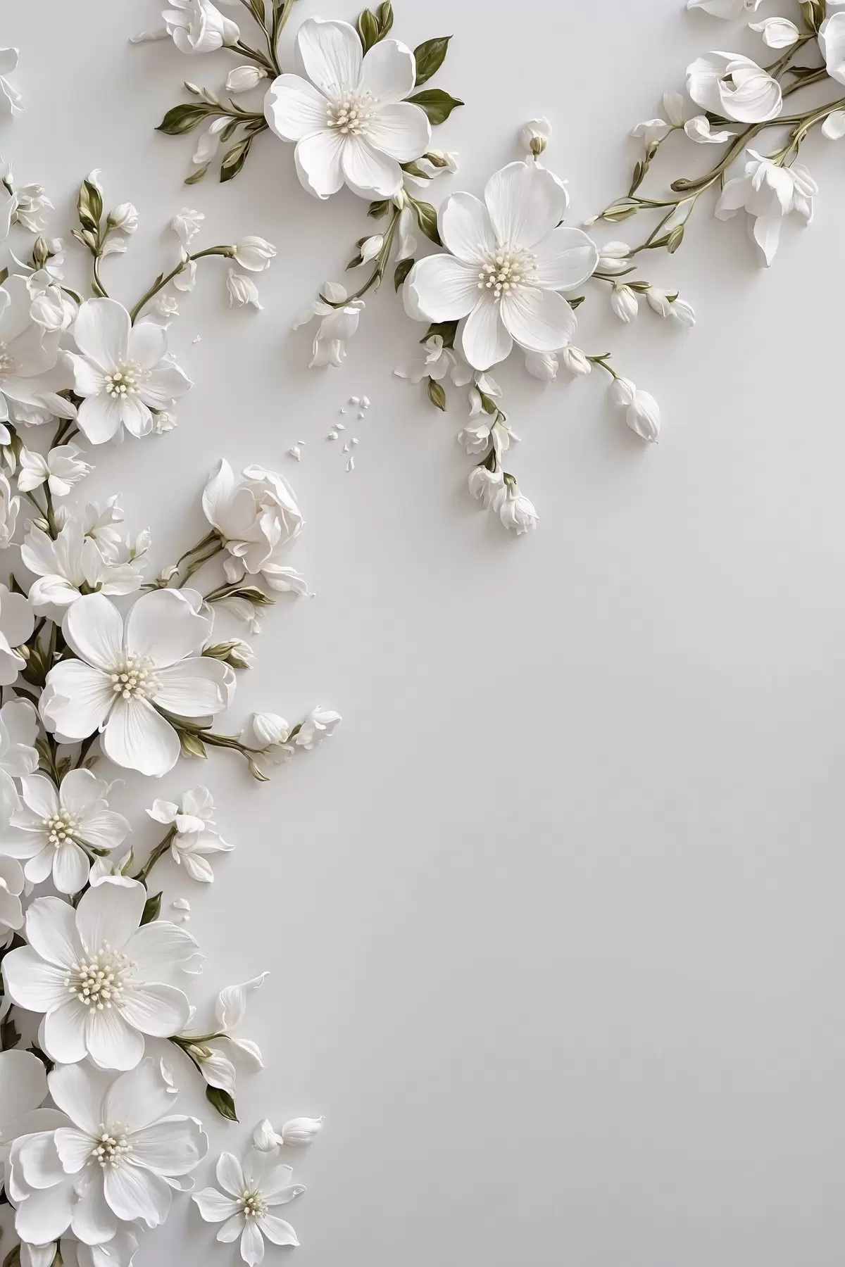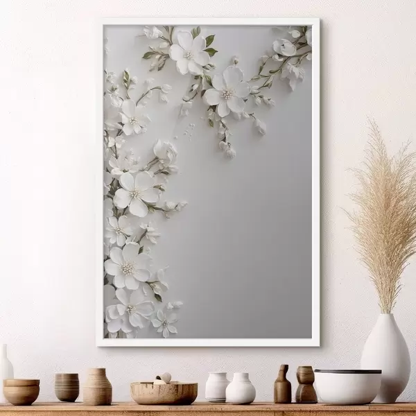 Poster Flores blancas sobre fondo blanco Nr f44466