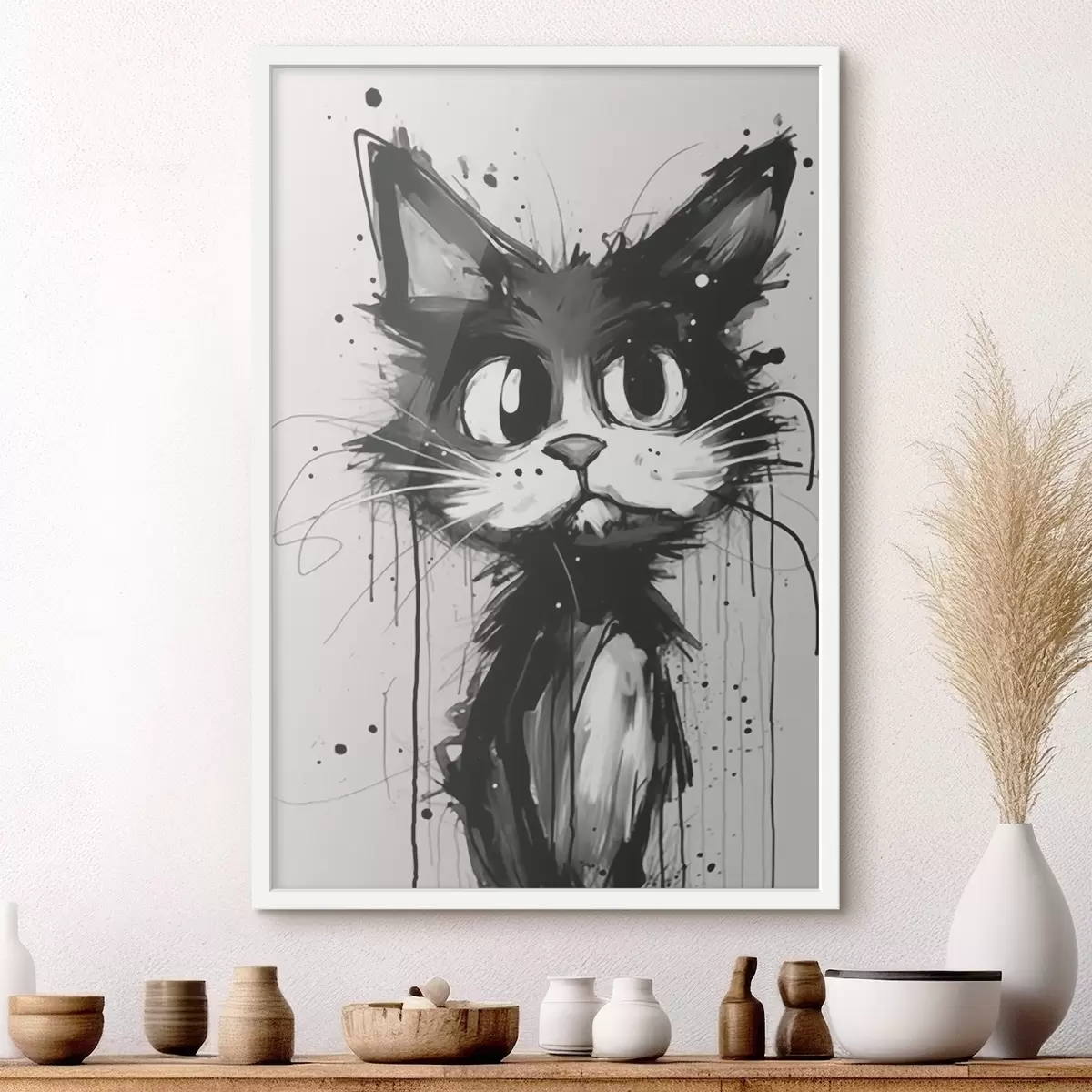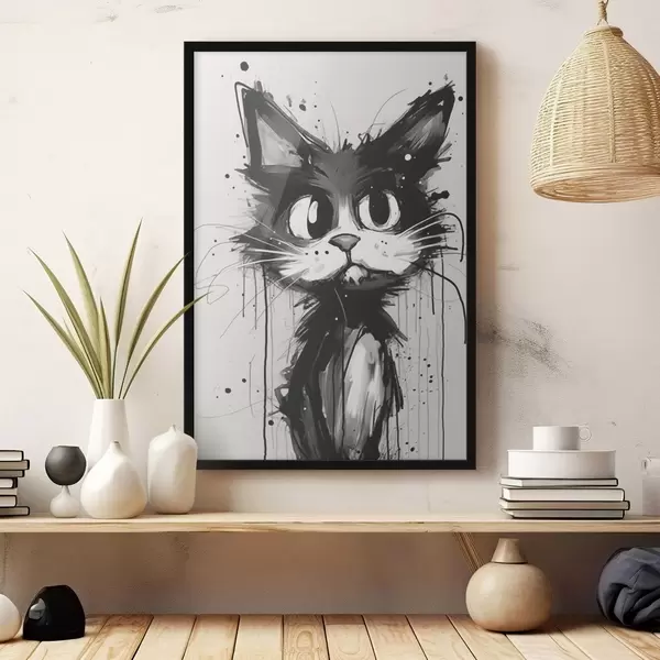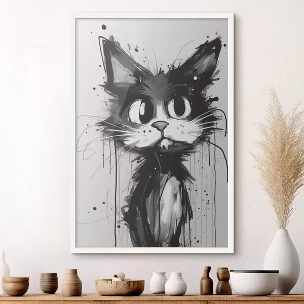 Poster Gato en estilo boceto con salpicaduras de pintura Nr f44483