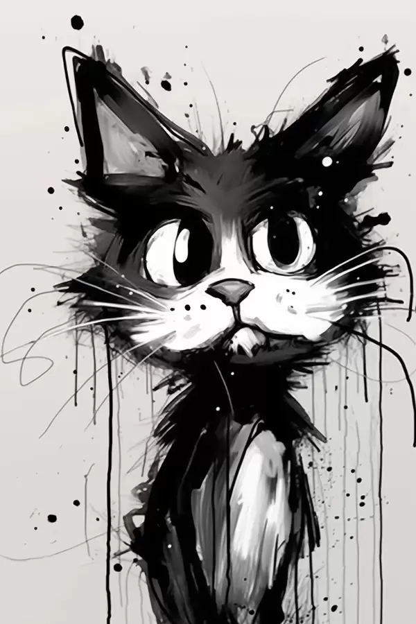 Poster Gato en estilo boceto con salpicaduras de pintura Nr f44483