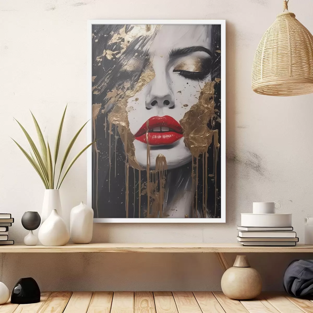 Poster Cara con labios rojos f44492