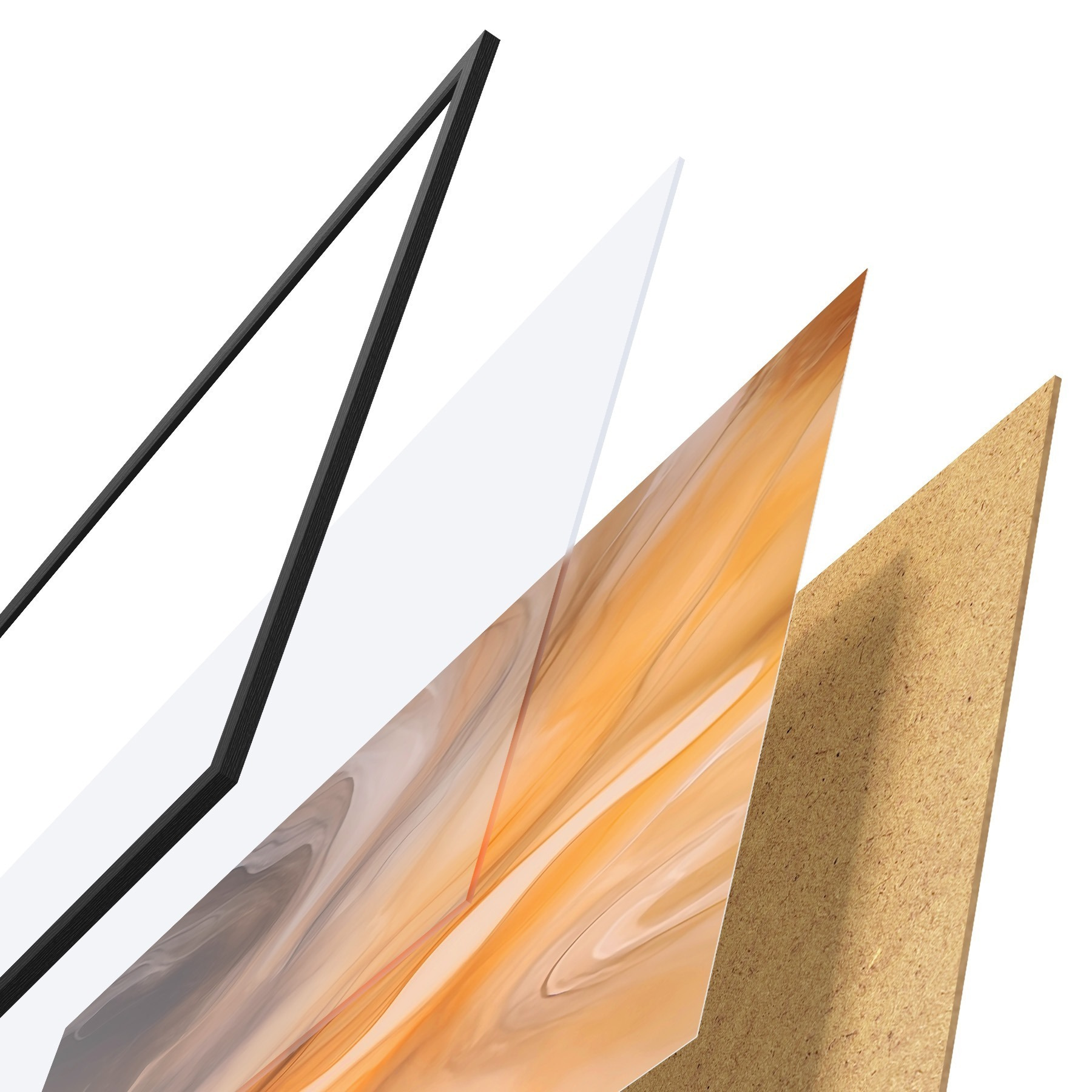 El póster consta de marco, plexiglás, imagen impresa y soporte de aglomerado. El póster puede colgarse inmediatamente en la pared gracias a los soportes de la parte posterior.