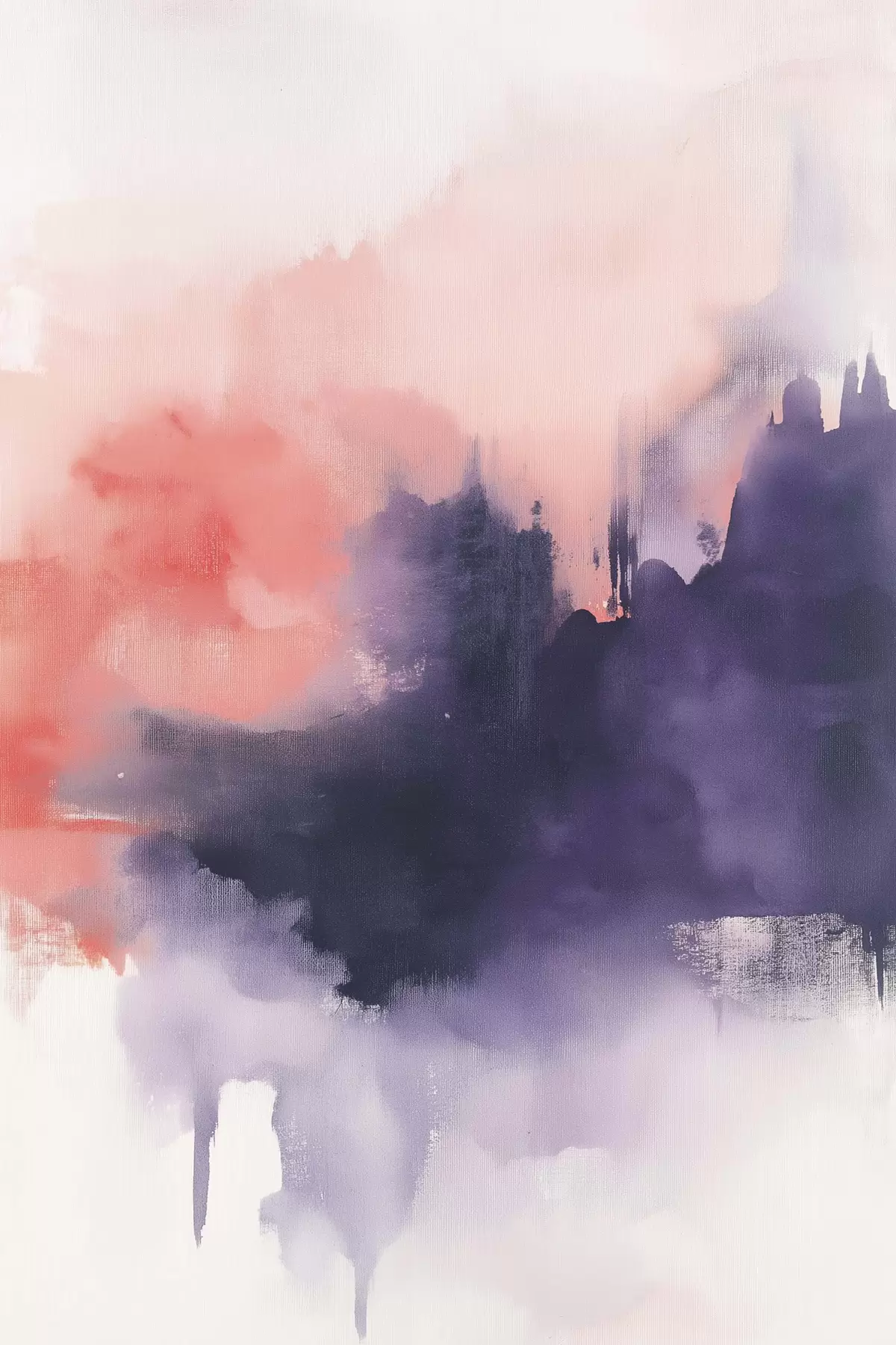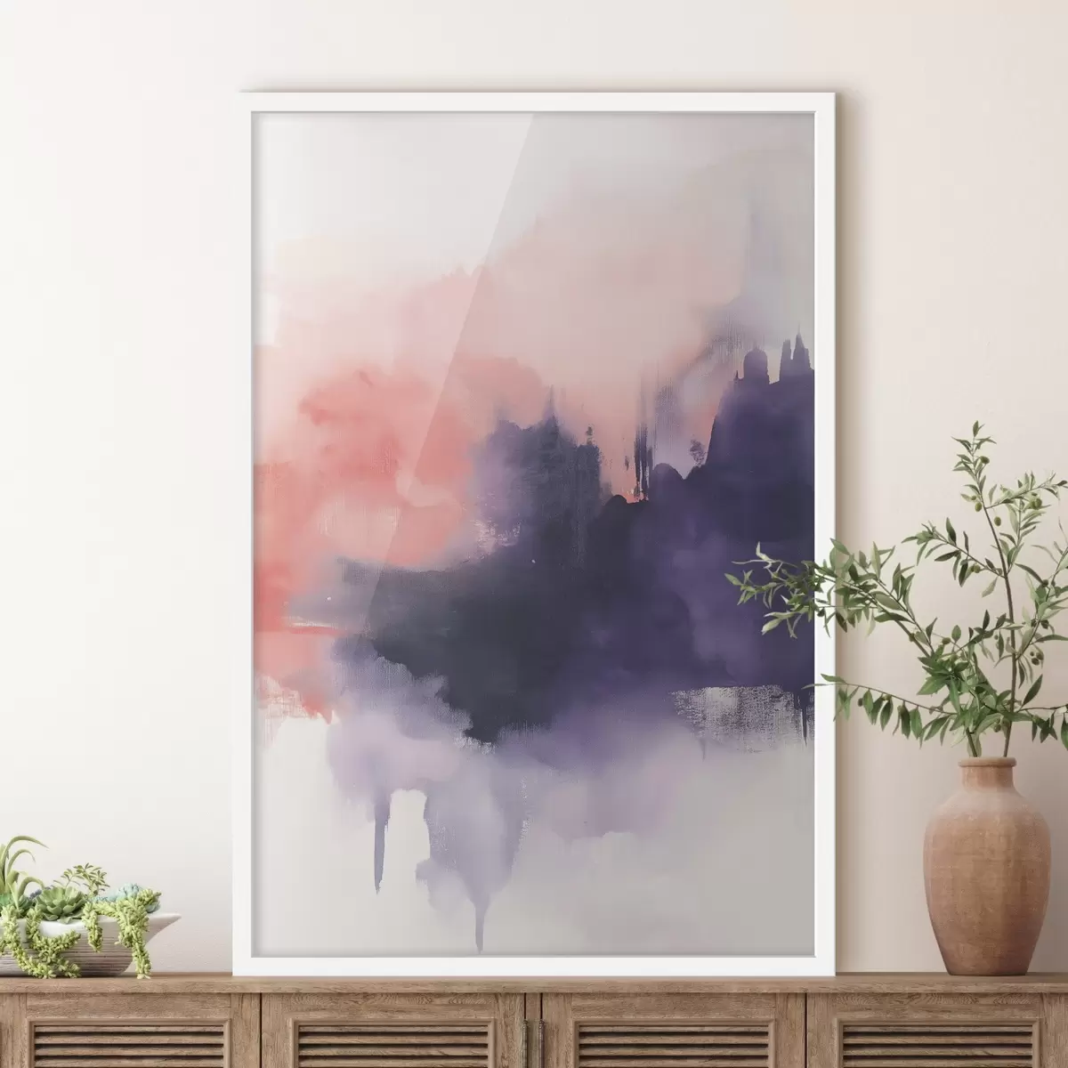 Poster Abstracción estilo acrílico, pinceladas, morado y rosa f44507