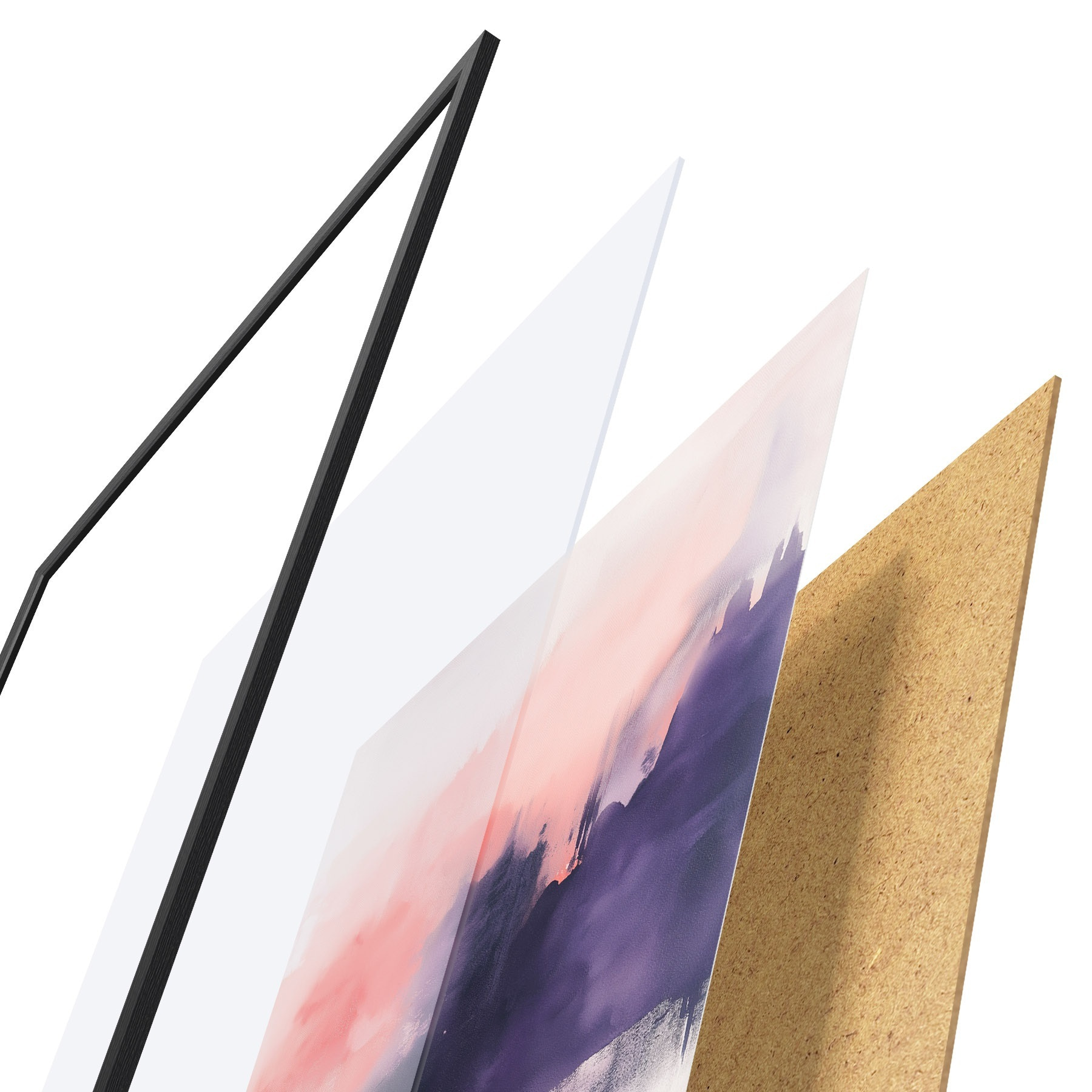 El póster consta de marco, plexiglás, imagen impresa y soporte de aglomerado. El póster puede colgarse inmediatamente en la pared gracias a los soportes de la parte posterior.