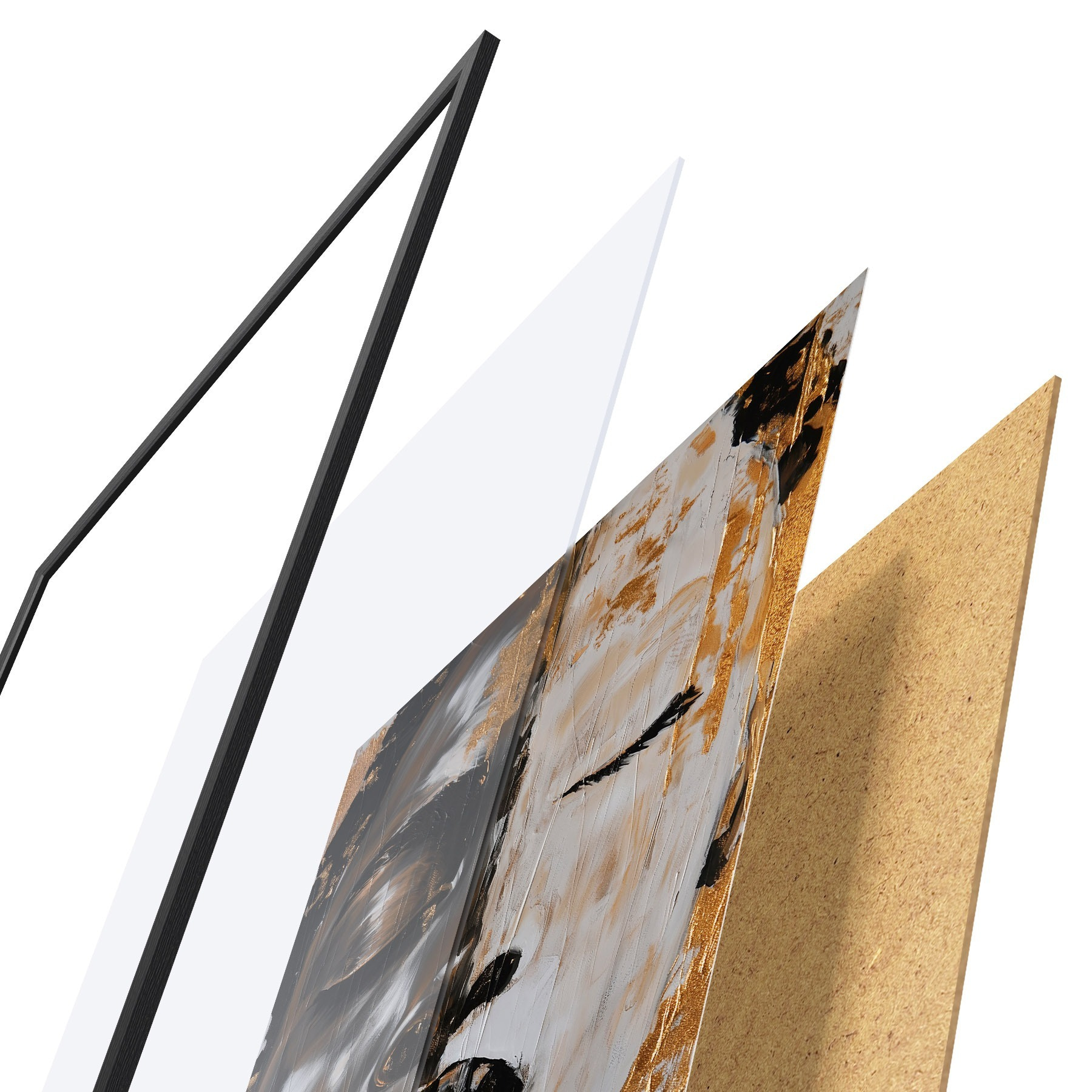 El póster consta de marco, plexiglás, imagen impresa y soporte de aglomerado. El póster puede colgarse inmediatamente en la pared gracias a los soportes de la parte posterior.