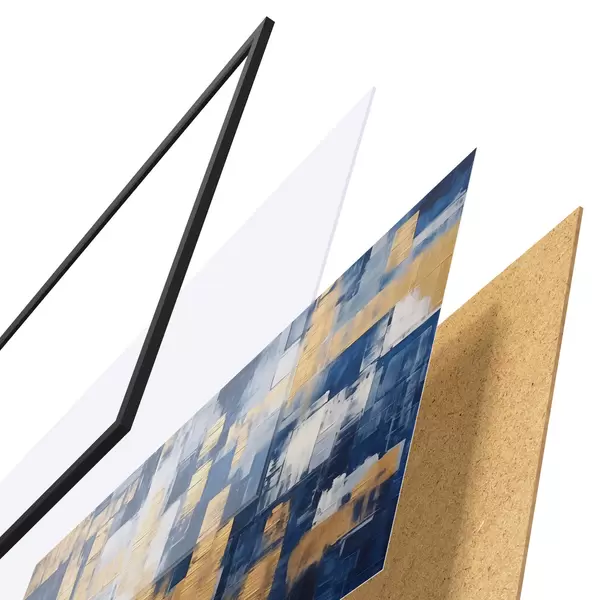 El póster consta de marco, plexiglás, imagen impresa y soporte de aglomerado. El póster puede colgarse inmediatamente en la pared gracias a los soportes de la parte posterior.