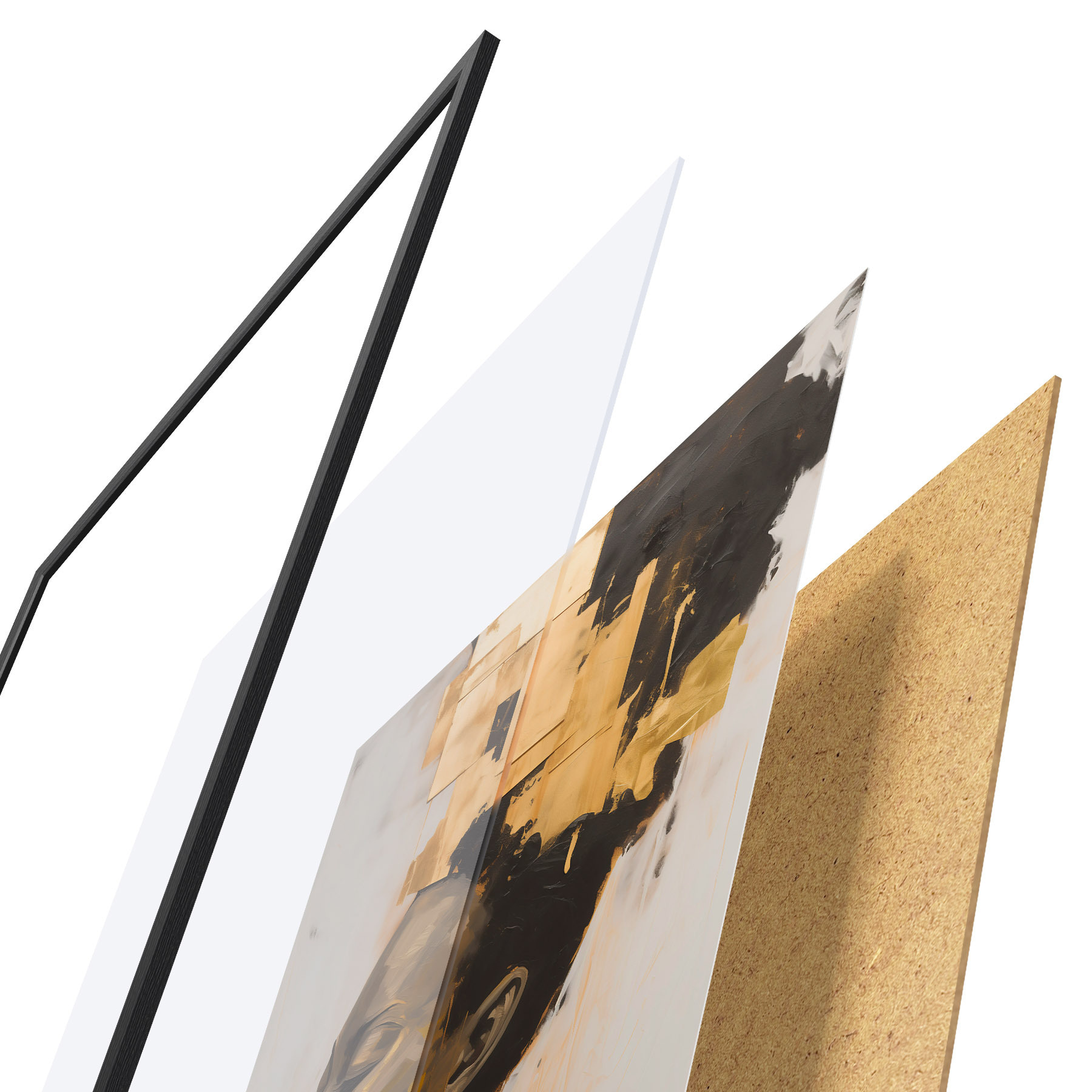 El póster consta de marco, plexiglás, imagen impresa y soporte de aglomerado. El póster puede colgarse inmediatamente en la pared gracias a los soportes de la parte posterior.