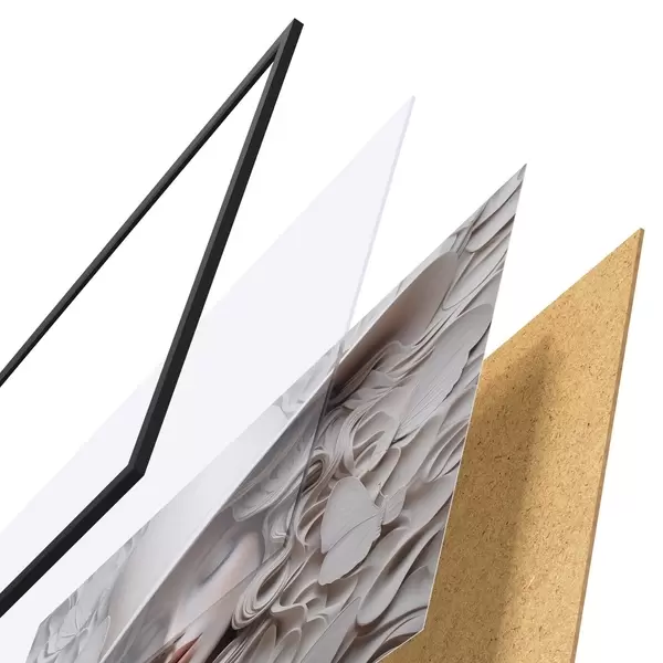 El póster consta de marco, plexiglás, imagen impresa y soporte de aglomerado. El póster puede colgarse inmediatamente en la pared gracias a los soportes de la parte posterior.
