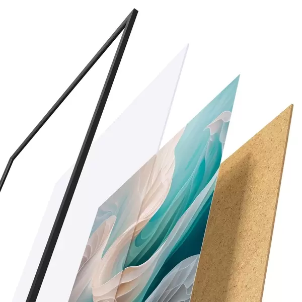 El póster consta de marco, plexiglás, imagen impresa y soporte de aglomerado. El póster puede colgarse inmediatamente en la pared gracias a los soportes de la parte posterior.