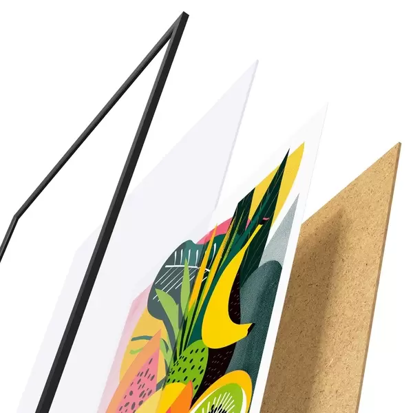 El póster consta de marco, plexiglás, imagen impresa y soporte de aglomerado. El póster puede colgarse inmediatamente en la pared gracias a los soportes de la parte posterior.
