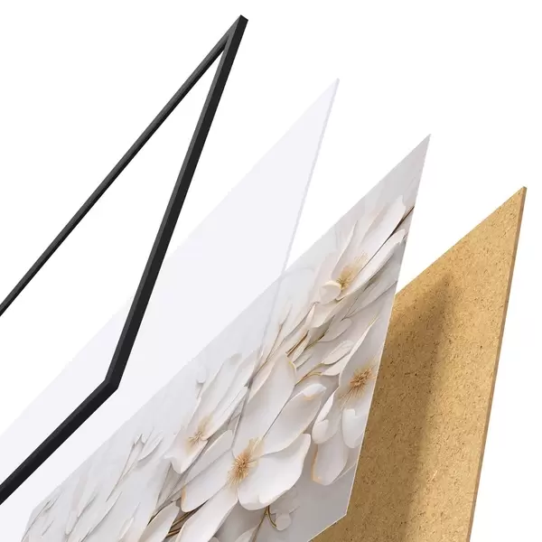 El póster consta de marco, plexiglás, imagen impresa y soporte de aglomerado. El póster puede colgarse inmediatamente en la pared gracias a los soportes de la parte posterior.