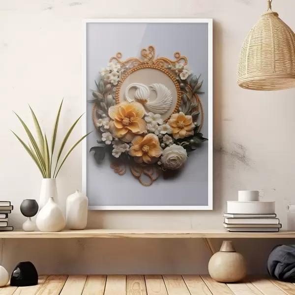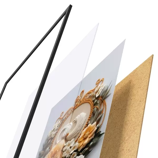 El póster consta de marco, plexiglás, imagen impresa y soporte de aglomerado. El póster puede colgarse inmediatamente en la pared gracias a los soportes de la parte posterior.