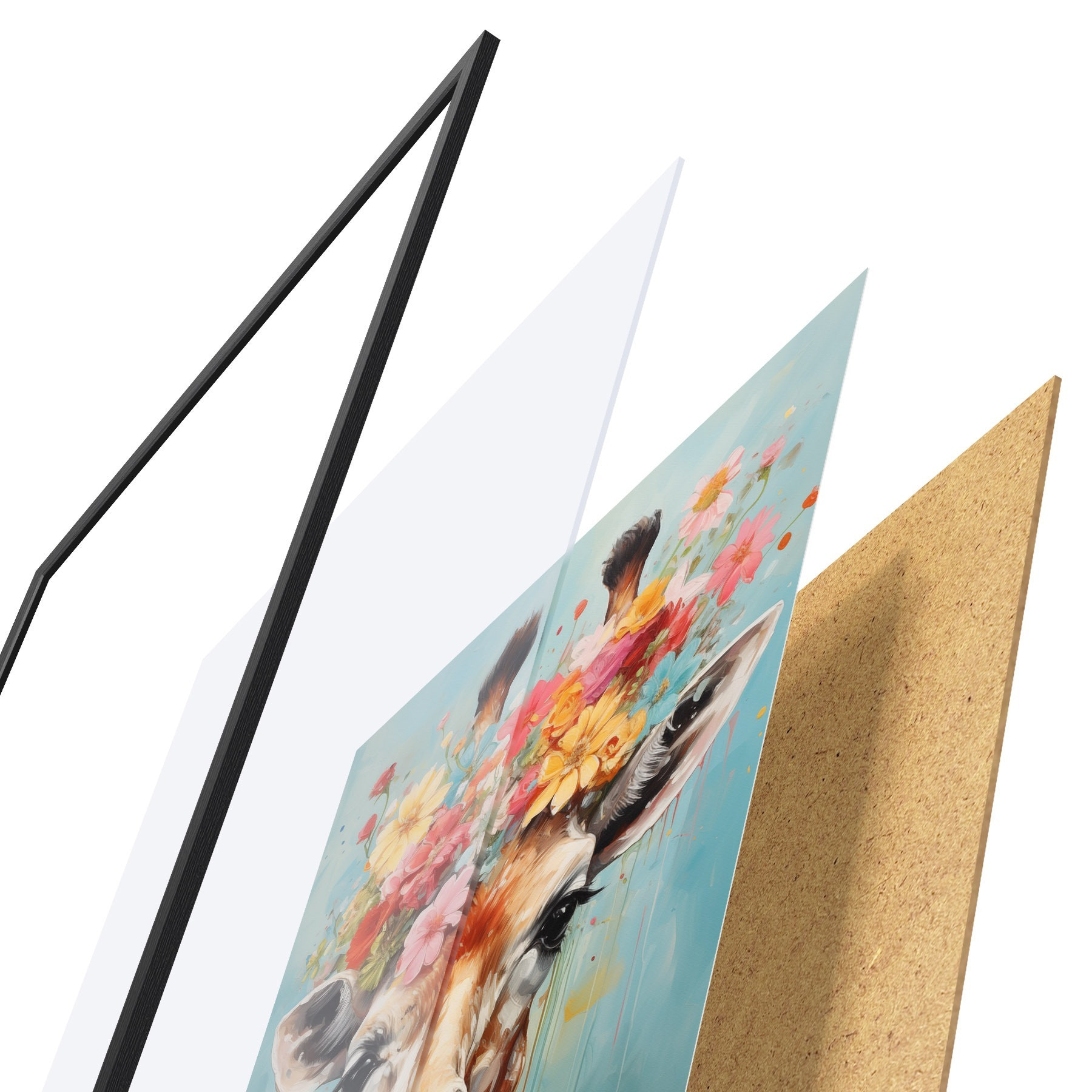 El póster consta de marco, plexiglás, imagen impresa y soporte de aglomerado. El póster puede colgarse inmediatamente en la pared gracias a los soportes de la parte posterior.