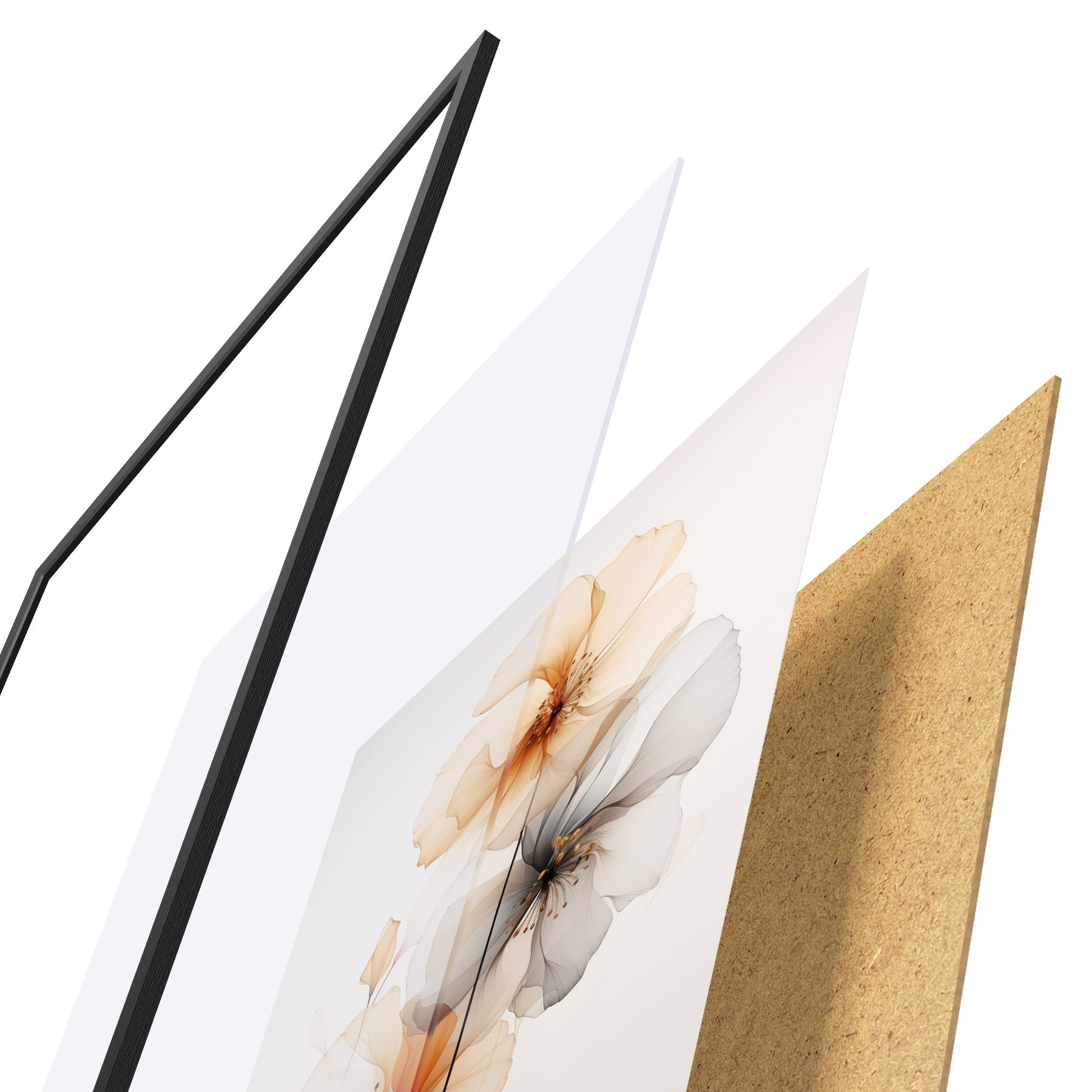 El póster consta de marco, plexiglás, imagen impresa y soporte de aglomerado. El póster puede colgarse inmediatamente en la pared gracias a los soportes de la parte posterior.