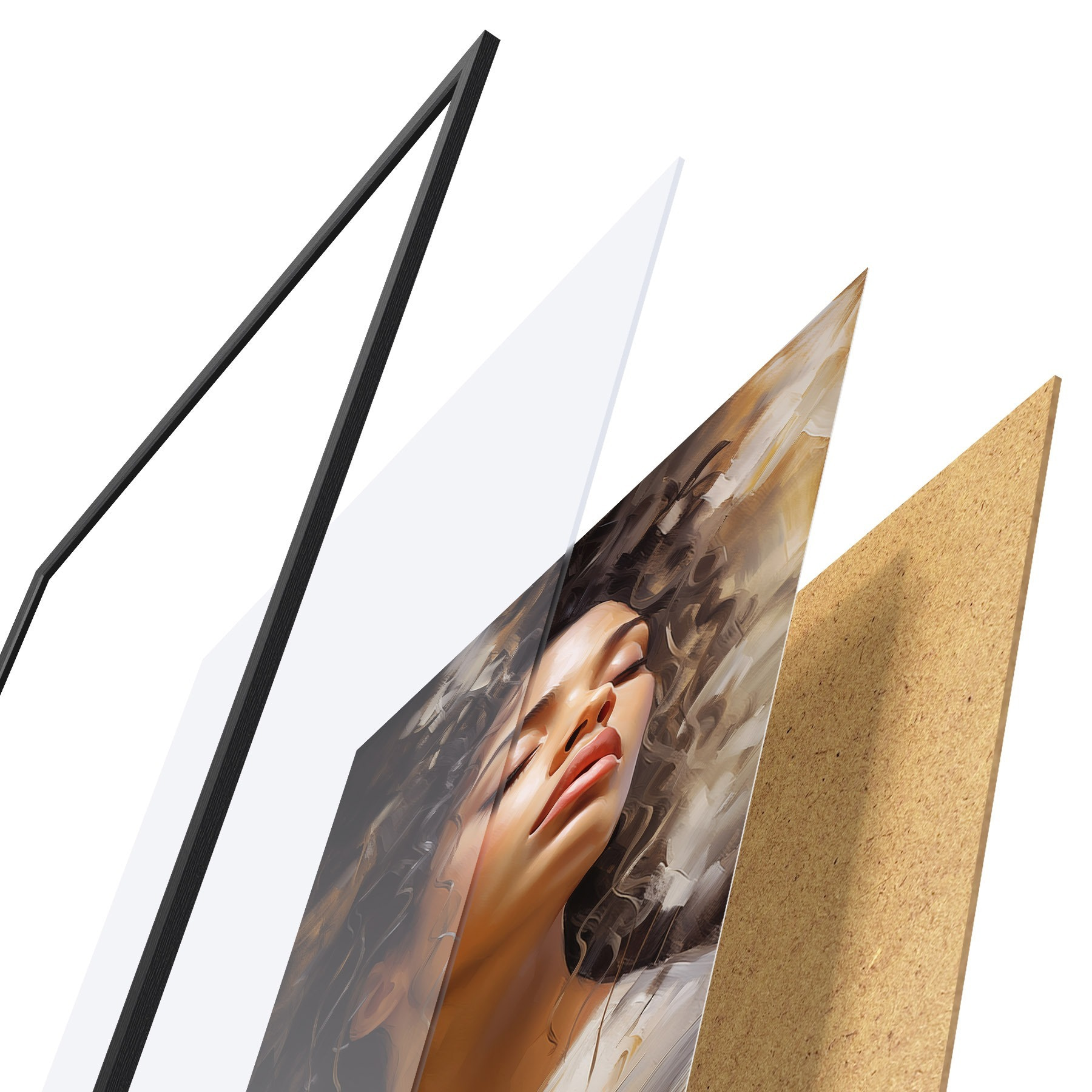 El póster consta de marco, plexiglás, imagen impresa y soporte de aglomerado. El póster puede colgarse inmediatamente en la pared gracias a los soportes de la parte posterior.